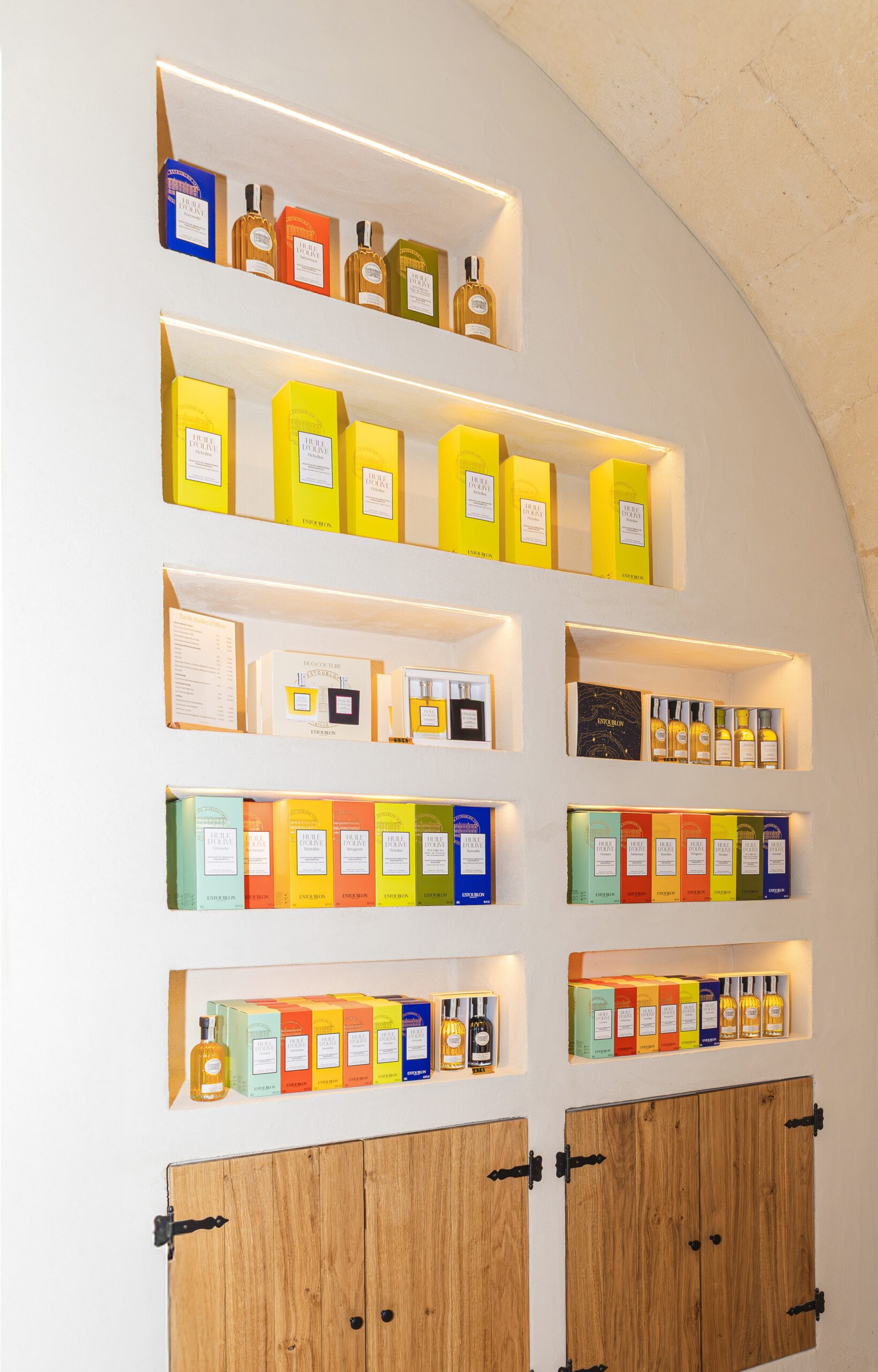 On beautiful apothecary shelves, the Estoublon boutique presents its collection of delicatessens.