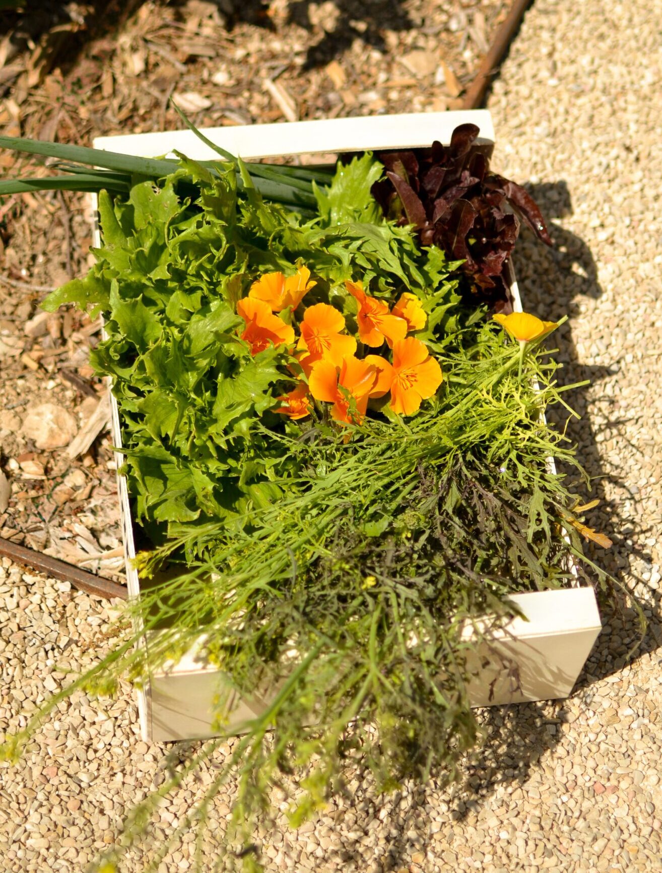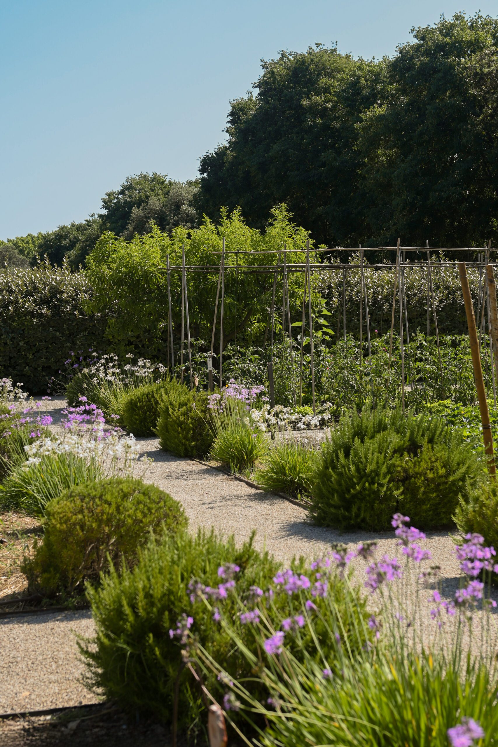 Conduits en agriculture biologique, les 2 500 mètres carrés du potager déclinent une large palette de plantes aromatiques, légumes, fruits, baies et fleurs…